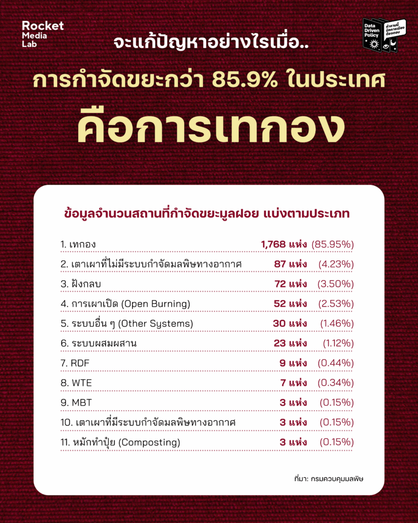 จะแก้ป้ญหาอย่างไร เมื่อมีประเทศไทยมีบ่อฝังกลบเพียง 72 แห่ง และการกำจัดขยะกว่า 85.9% ในประเทศคือการเทกอง