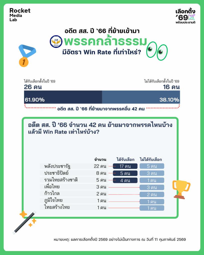 อดีต สส. ปี 66 ที่ย้ายจากพรรคอื่นเข้ามาพรรคกล้าธรรม มี Win Rate เท่าไหร่กัน