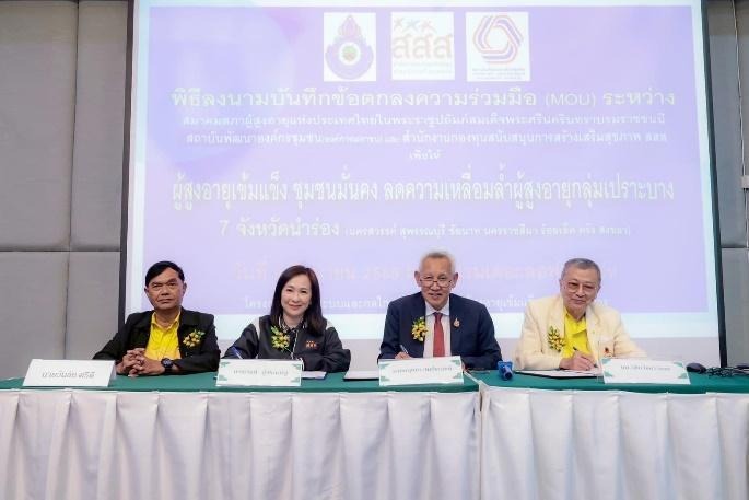 การดำเนินกิจกรรมภายในชมรมครอบคลุม 4 มิติ ทั้งสุขภาพ เศรษฐกิจ สังคม และสภาพแวดล้อม เช่น กิจกรรมออกกำลังกาย จิตอาสา ออมเงิน โรงเรียนผู้สูงอายุ และกิจกรรมฟื้นฟู โดยมีเป้าหมายขยายให้ครอบคลุมถึง 3,000 ชมรมภายในปี 2570 เพื่อให้ผู้สูงอายุกว่า 600,000 คน ได้มีสุขภาวะและคุณภาพชีวิตที่ดีขึ้น ลดความเหลื่อมล้ำผู้สูงอายุกลุ่มเปราะบาง และหวังว่าความร่วมมือครั้งนี้จะช่วยให้เกิด ‘ระบบดูแลผู้สูงอายุในชุมชนโดยชุมชน’ ที่เดินหน้าอย่างเป็นระบบร่วมกัน พัฒนาให้ชมรมผู้สูงอายุเป็นแกนกลางของการดูแลสุขภาวะในทุกพื้นที่ได้ เป็นอีกหนึ่งก้าวสำคัญในการเตรียมความพร้อมสู่ ‘สังคมผู้สูงอายุอย่างสมบูรณ์’ ที่ไม่ทิ้งใครไว้ข้างหลัง