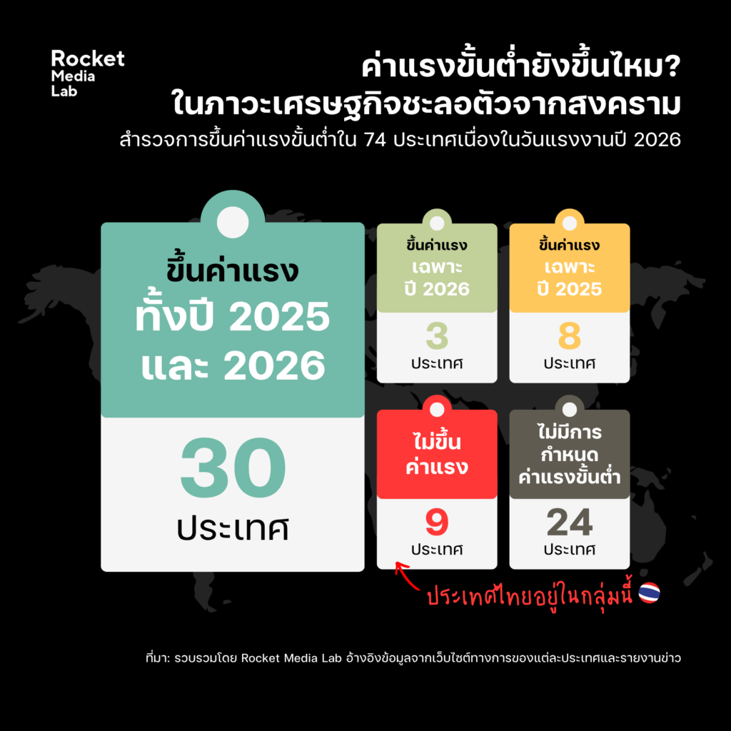 Rocket Media Lab สำรวจข้อมูลค่าแรงขั้นต่ำทั่วโลกว่าในสถานการณ์เช่นนี้ ยังมีประเทศไหนบ้างที่ยังคงขึ้นค่าแรงขั้นต่ำในวันแรงงานปี 2026 นี้