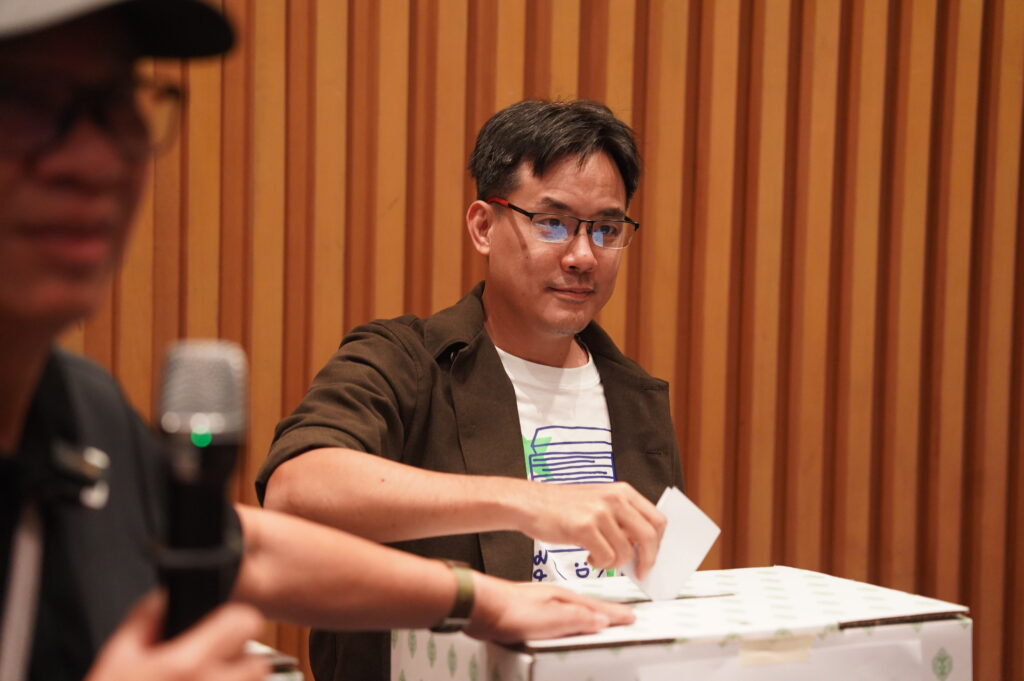“ปี 2566 มีบัตรเสียเกือบสามล้านใบ ถ้าเรามีอาสาสมัครไปโต้แย้ง บัตรเสียอาจจะกลายมาเป็นบัตรดีได้อีกหลายล้านใบ และปีนี้การกาบัตรไม่ได้มีแค่พรรคการเมืองกับ สส. เขต แต่มีประชามติด้วย นั่นจึงเป็นเหตุผลว่าทำไมเราถึงต้องการอาสาสมัครเพิ่ม” สันติชัยกล่าว